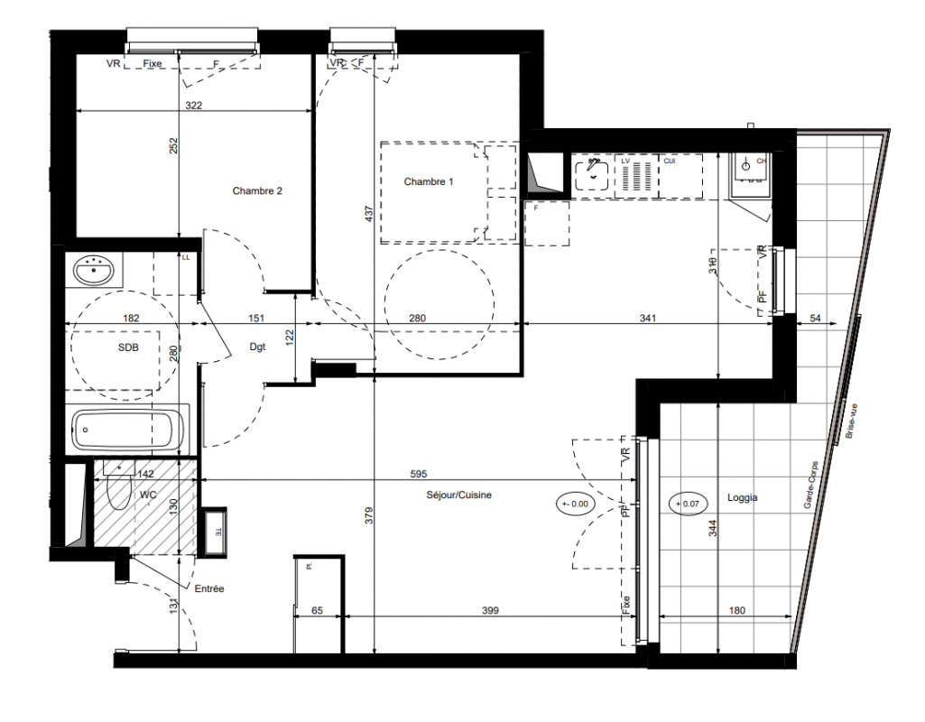 244 000€ Appt. T3 64.2m2 0-RDC