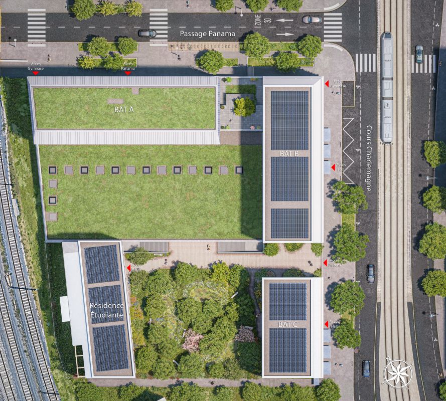 Ce projet porte également commerces, des surfaces tertiaires et un gymnase omnisport urbain pensés comme des lieux de proximité, répondant aux besoins quotidiens des habitants et usagers du quartier.