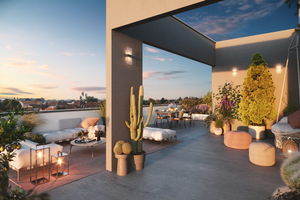 UN SIGNAL CONTEMPORAIN À la croisée de l’allée Christine Pascal et de la rue Françoise Sagan, Néo7 s’élève comme un signal fort, vert et contemporain, qui se détache en ligne de crête du qu...