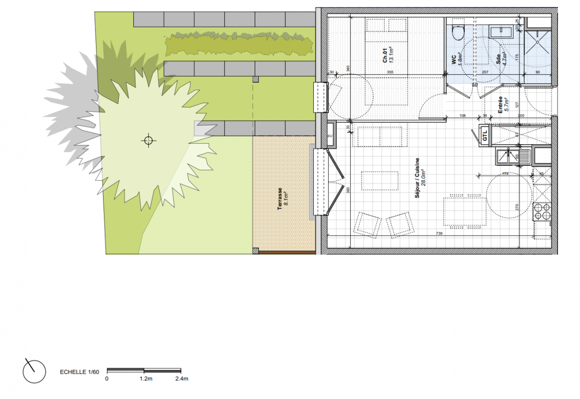 405 000€ Appt. T2 53.3m2 1er