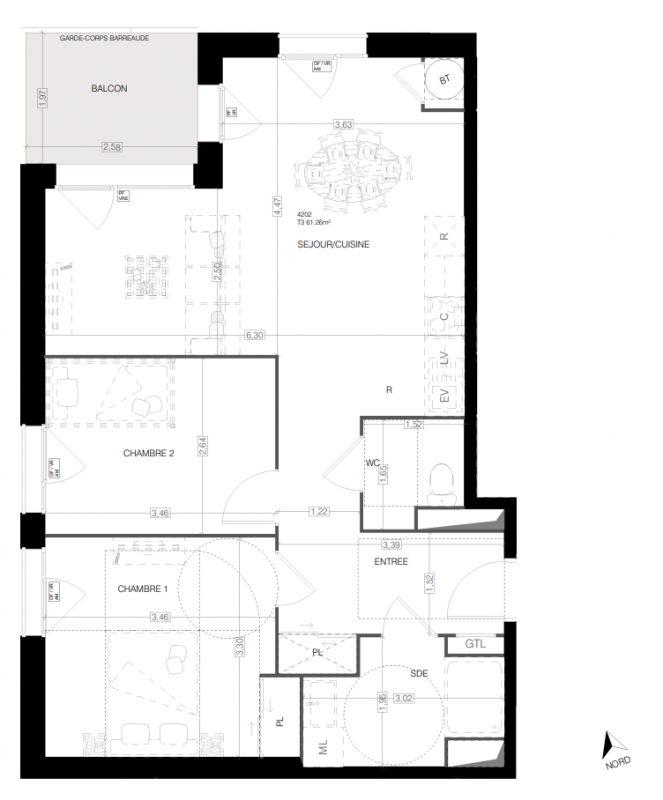 226 999€ Appt. T3 60m2 2ème