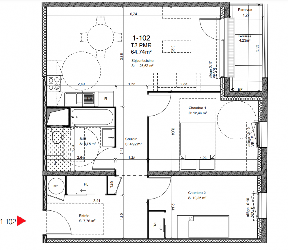 | Voir | Disponible | 166 100€ | 1106 | Appt. | T3 | 66.65m2 | 1er | Disponible | 166 100€ | Voir |
