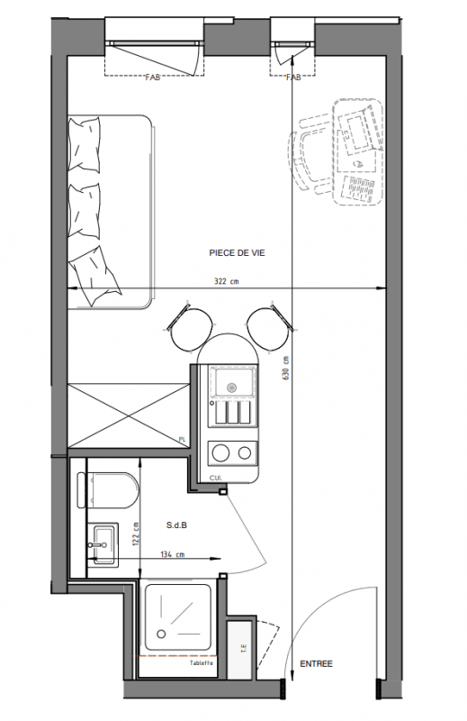 89 173€ Appt. Studio 17.34m2 0-RDC
