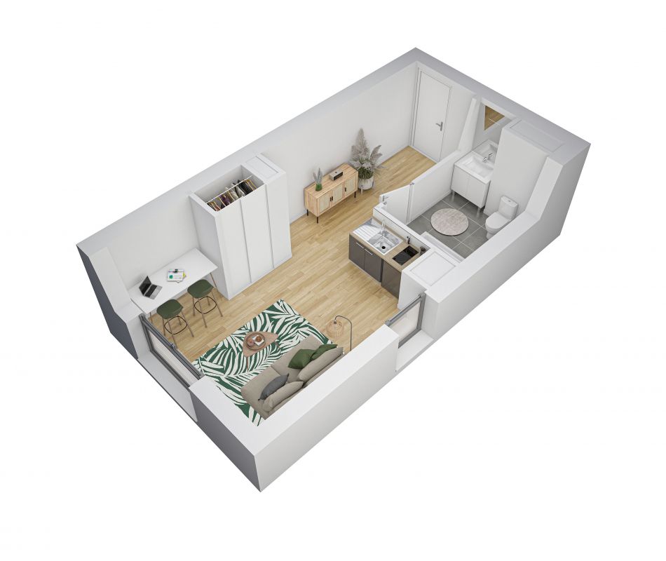 102 500€ Appt. Studio 19.49m2 0-RDC