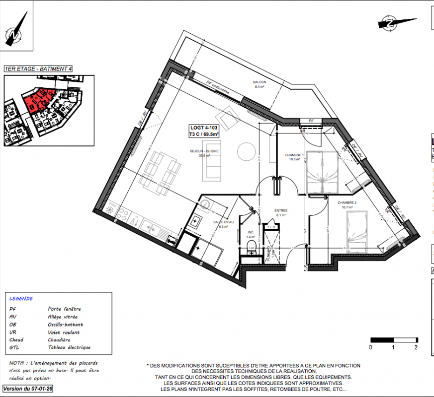 | Voir | Disponible | 250 000€ | 1-107 | Appt. | T3 | 57.4m2 | 1er | Disponible | 250 000€ | Voir |