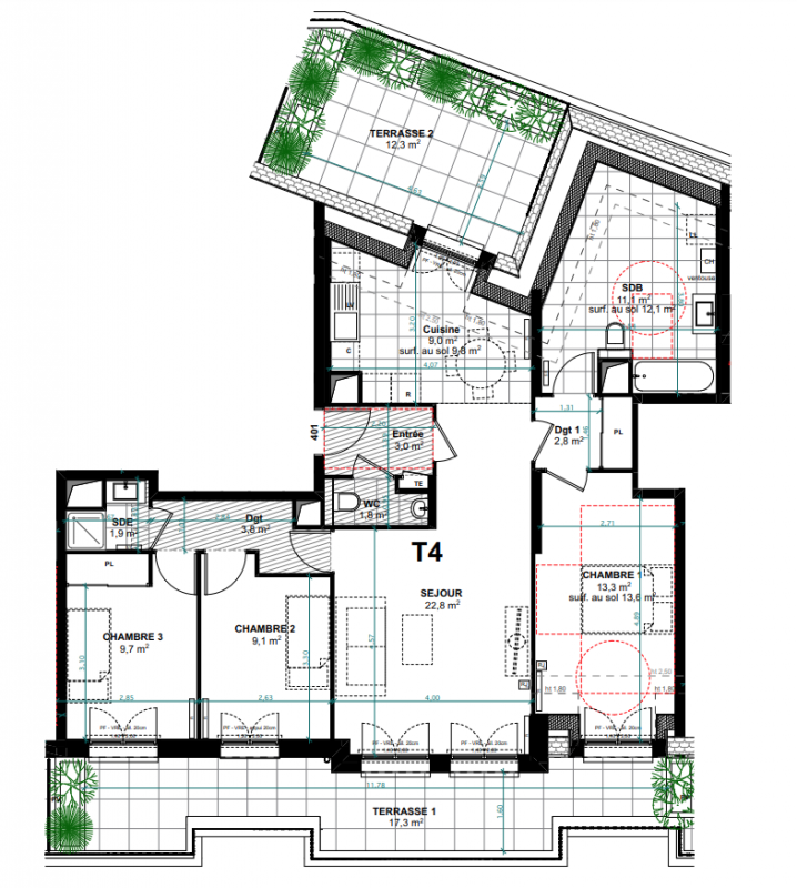 Autres logements T4 du programme "LES TERRASSES MANSART"