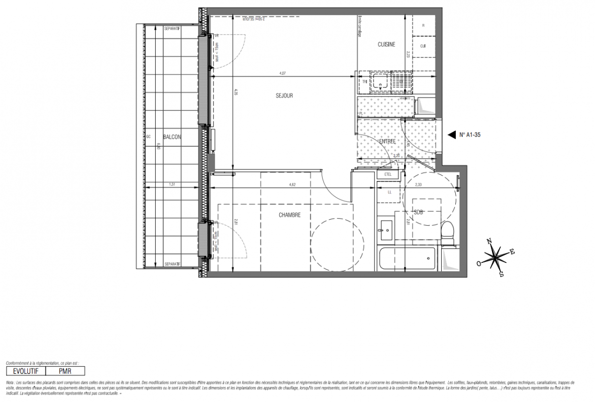 Cloisons épaisseur 7 cm dans l’ensemble des logements