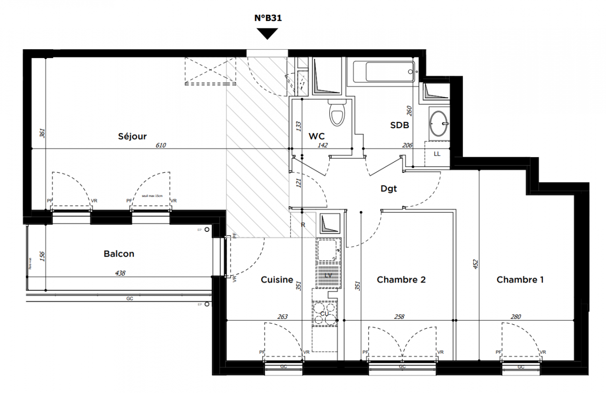 397 600€ Appt. T3 64.02m2 0-RDC