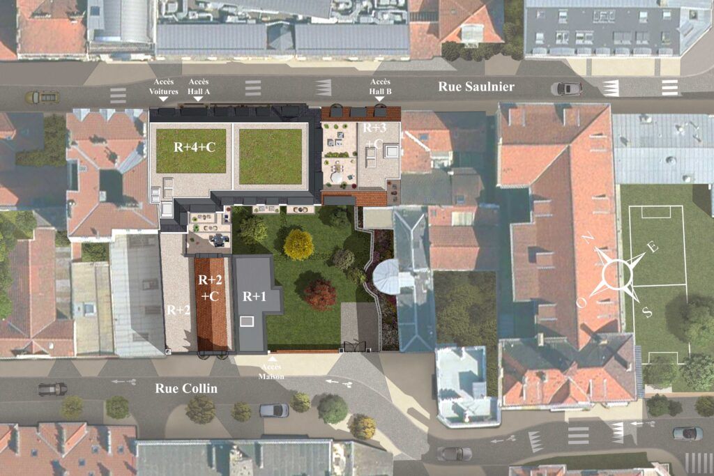 Situation Dans le secteur de la Mairie, à proximité du tram et du métro Description 18 appartements du studio au 5 pièces, tous avec un espace extérieur 2 maisons 6 pièces avec jardin — u...