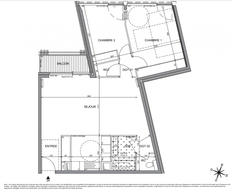 34 appartements avec balcons et terrasses