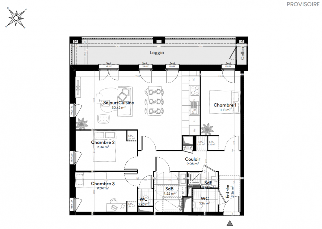 309 900€ Appt. - 60.09m2 3ème