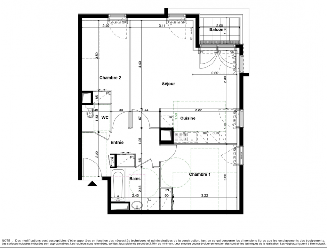 350 520€ Appt. T3 65.9m2 2ème
