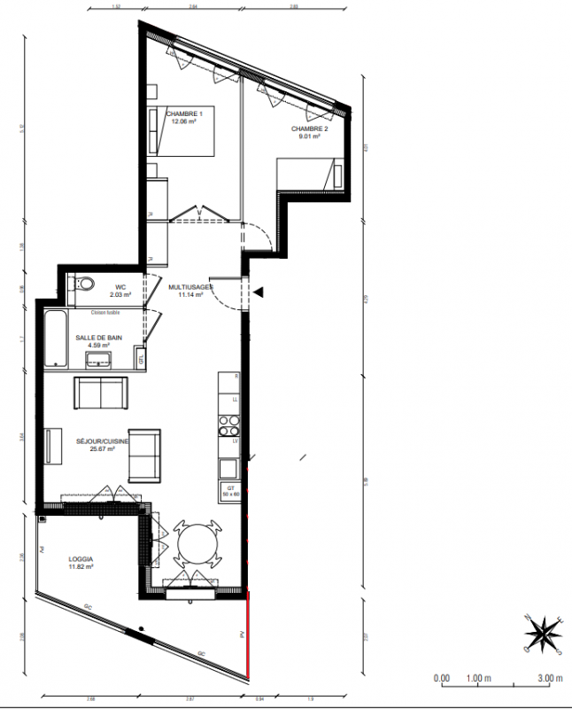 408 341€ Appt. T3 66.95m2 6ème