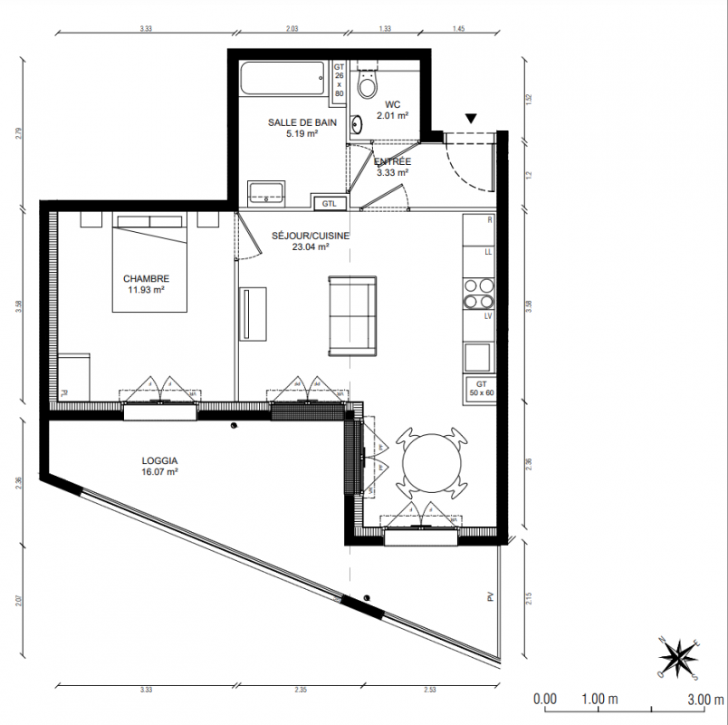 327 583€ Appt. T2 49.52m2 6ème