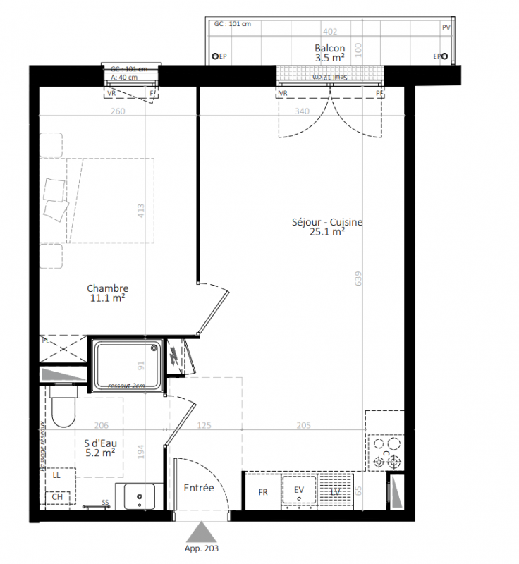 | Voir | Disponible | 275 147€ | 408 | Appt. | T2 | 45.3m2 | 4ème | Disponible | 275 147€ | Voir |