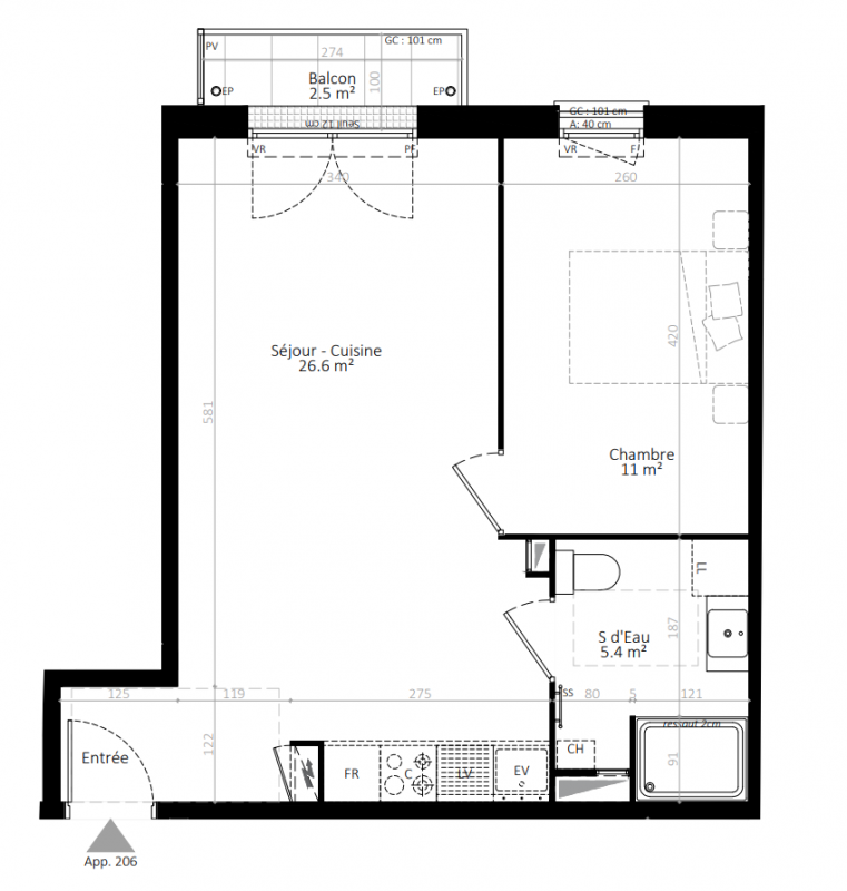 218 275€ Appt. T2 39.6m2 3ème