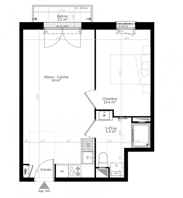 | Voir | Disponible | 216 569€ | 106 | Appt. | T2 | 43m2 | 0-RDC | Disponible | 216 569€ | Voir |