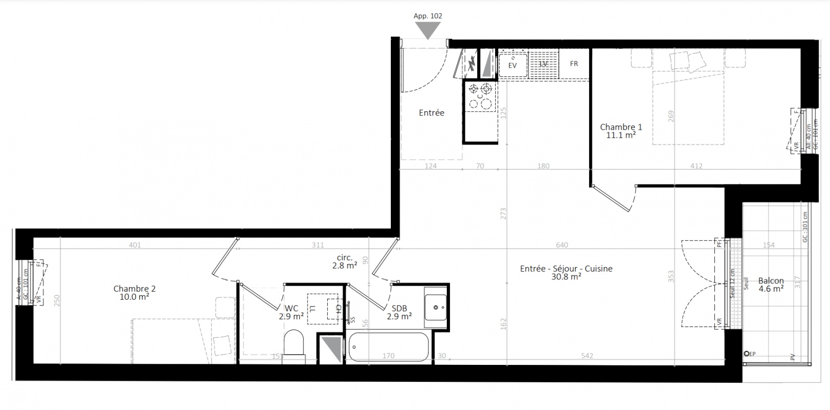 | Voir | Disponible | 300 171€ | 402 | Appt. | - | 58.1m2 | 4ème | Disponible | 300 171€ | Voir |