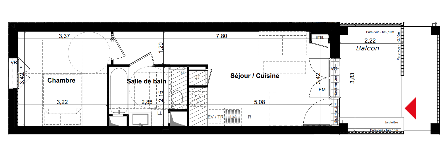 | Voir | Disponible | 173 900€ | B03 | Appt. | - | 37.66m2 | 0-RDC | Disponible | 173 900€ | Voir |