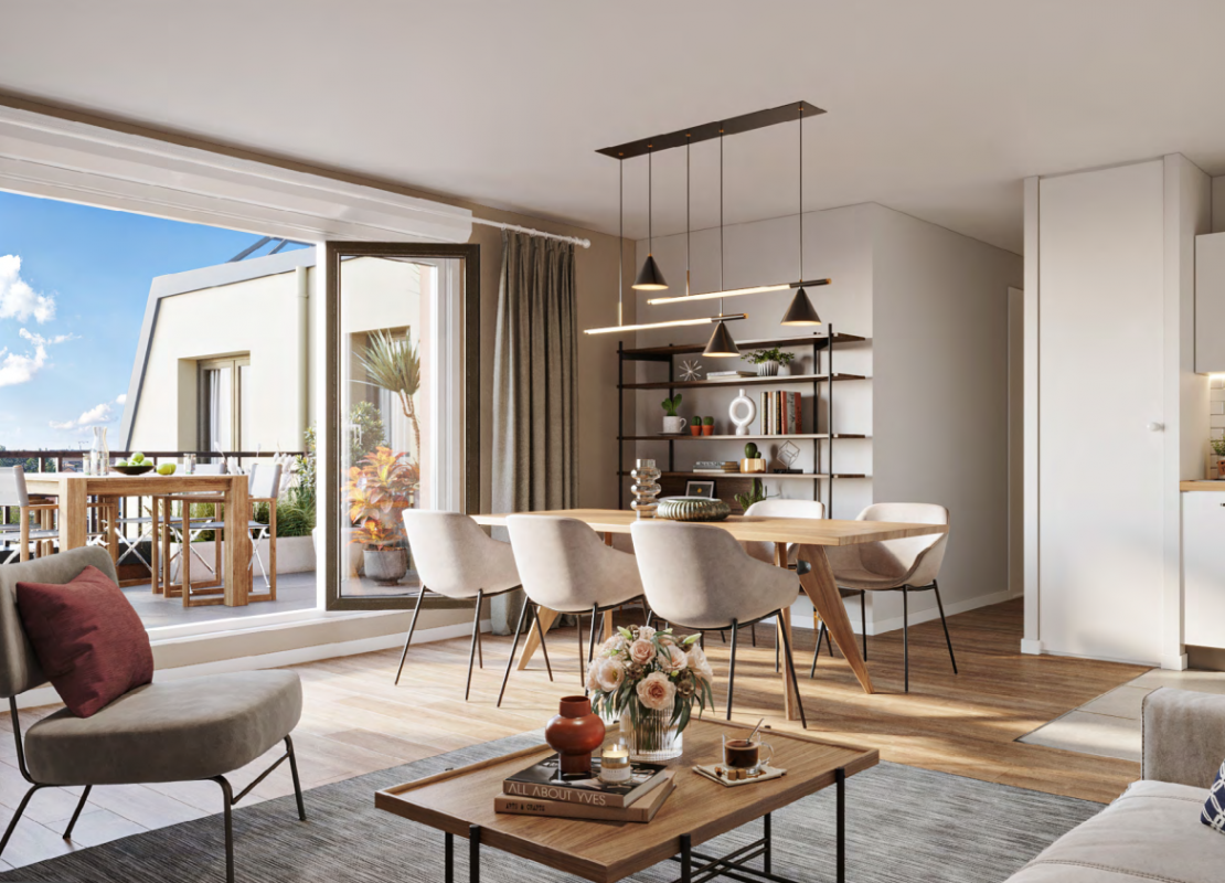 Pour les appartements en étage, des loggias, balcons ou terrasses permettent de prolonger les lieux de vie vers l’extérieur.