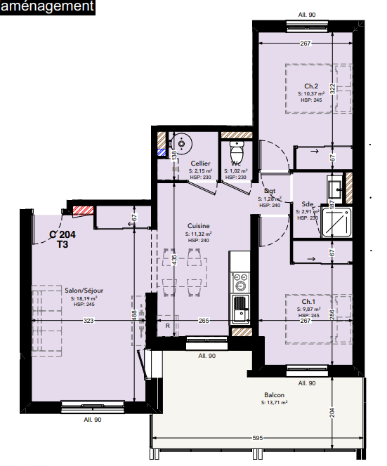 | Voir | Disponible | 277 811€ | 15 | Appt. | T3 | 57m2 | 1er | Disponible | 277 811€ | Voir |