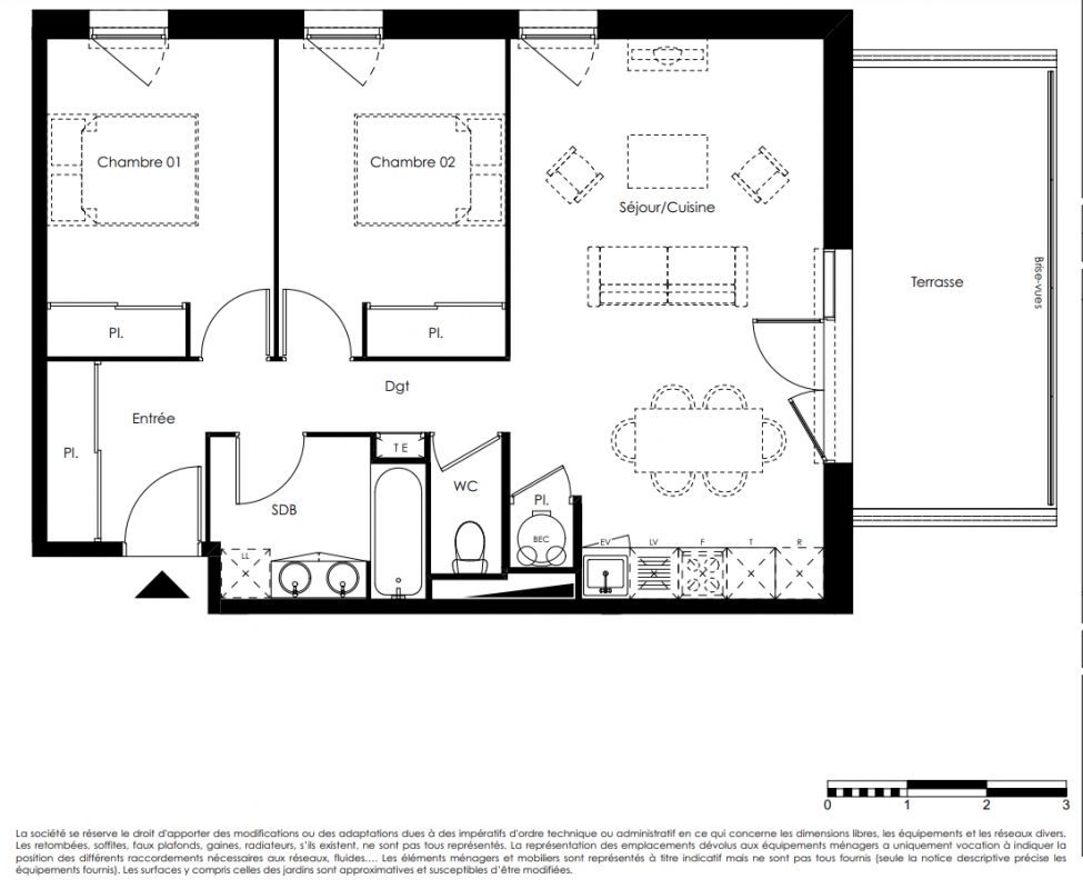 Cette résidence à taille humaine se compose de 44 logements : 12 villas T4 et T5 avec garage, et 32 appartements du T2 au T3.
