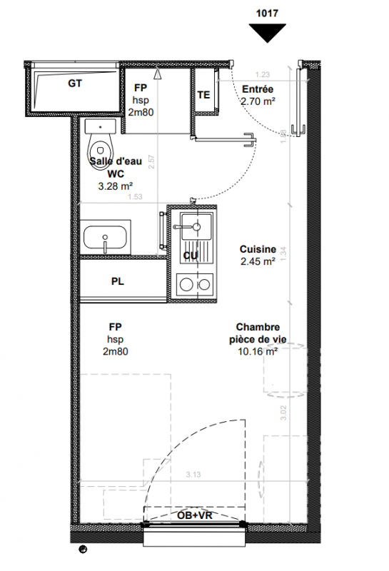 103 300€ Appt. Studio 18m2 0-RDC