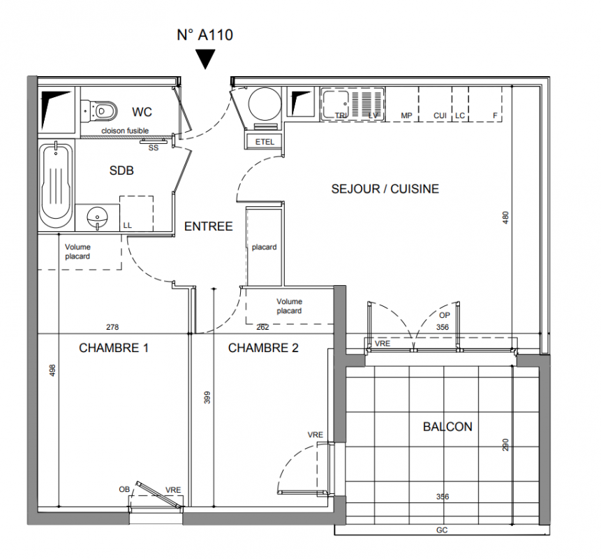 228 000€ Appt. T3 56.66m2 0-RDC