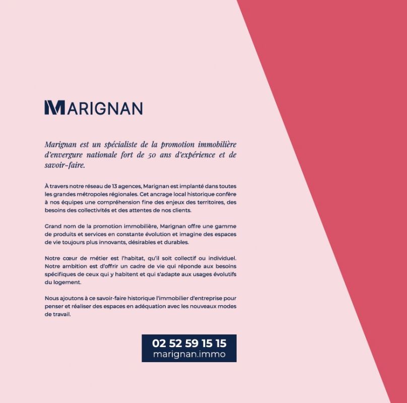 Inscrivez-vous à notre journée portes ouvertes à NANTES le samedi 11 avril ! Venez visiter notre appartement décoré et profitez de notre offre exclusive pour emménagement en septembre ! Idéalement située à l'Est de la ville, dans un quartier en devenir, Programme neuf Nantes (44000) offre un environnement attrayant et une qualité de vie optimale pour ses futurs résidents. La résidence bénéficie d'une localisation stratégique, offrant un accès facilité à tous les services et commodités nécessaires à la vie quotidienne. Les environs se distinguent par un mélange harmonieux de zones résidentielles et d'espaces verts, créant un cadre de vie agréable, propice à la détente et à la tranquillité.Bienvenue dans votre future résidence moderne et lumineuse qui propose des appartements du studio au 2 pièces. Chaque logement a été pensé pour répondre aux besoins du quotidien avec des espaces fonctionnels et bien agencés. Les séjours, ouverts et lumineux, profitent pleinement de la lumière naturelle tout au long de la journée, créant une atmosphère chaleureuse et conviviale. Les grandes baies vitrées permettent de profiter d'une vue dégagée sur les environs. Pour profiter pleinement des beaux jours, chaque appartement dispose d'un espace extérieur privatif : balcon, terrasse ou jardin.Pensée pour offrir un cadre de vie confortable et moderne, la résidence propose des prestations de qualité, avec des matériaux et des finitions soigneusement sélectionnés afin de garantir un environnement esthétique et durable.Côté transports, l'arrêt de bus Basse Chênaie se situe à seulement quelques pas de la résidence, tandis que l'arrêt de tramway ligne 1 Souillarderie est accessible en 9 minutes à pied. Le périphérique nantais se rejoint en 2 minutes en voiture et une voie vélo viendra prochainement longer la résidence, facilitant les déplacements doux.Les amateurs de nature apprécieront également la proximité des parcs et jardins du quartier, idéals pour se détendre ou pratiquer des activités en plein air. Les berges de la Loire, situées à proximité, offrent de belles promenades au bord de l'eau. Enfin, le quartier bénéficie d'un accès rapide aux écoles, commerces de proximité, supermarchés et restaurants, pour un quotidien pratique et agréable.Contactez vite un de nos conseillers pour découvrir tous nos logements neufs à Nantes et pour concrétiser votre projet immobilier !