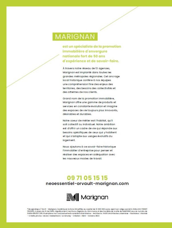 Achetez votre appartement neuf à Orvault et profiter de nos offres exceptionnelles du moment ! Le long de la route de Vannes, au coeur d'un ensemble de plusieurs bâtiments d'une grande variété architecturale, se trouve le futur poumon vert du quartier Néo à Orvault, où la nature s'illustre pleinement créant ainsi des zones de détente, de rencontre ou de jeux. Répondant parfaitement aux aspirations actuelles, les circulations douces ont pris le pas sur la voiture au travers de cheminements piétonniers et de pistes cyclables.Un large choix d'appartements, du 2 au 4 pièces s'offre à vous, tous prolongés par un balcon, un jardin privatif ou une magnifique terrasse aux vues exceptionnelles. Leurs surfaces intérieures profitent d'un maximum d'ensoleillement grâce à leurs orientations optimisées.Contactez vite un de nos conseillers pour découvrir tous nos logements neufs à Orvault et pour concrétiser votre projet immobilier neuf !