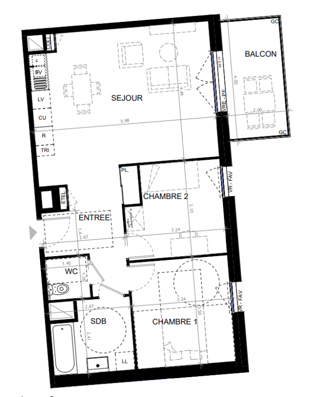 283 400€ Appt. T3 59.88m2 2ème