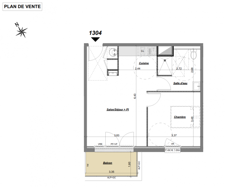 160 999€ Appt. T2 43m2 3ème